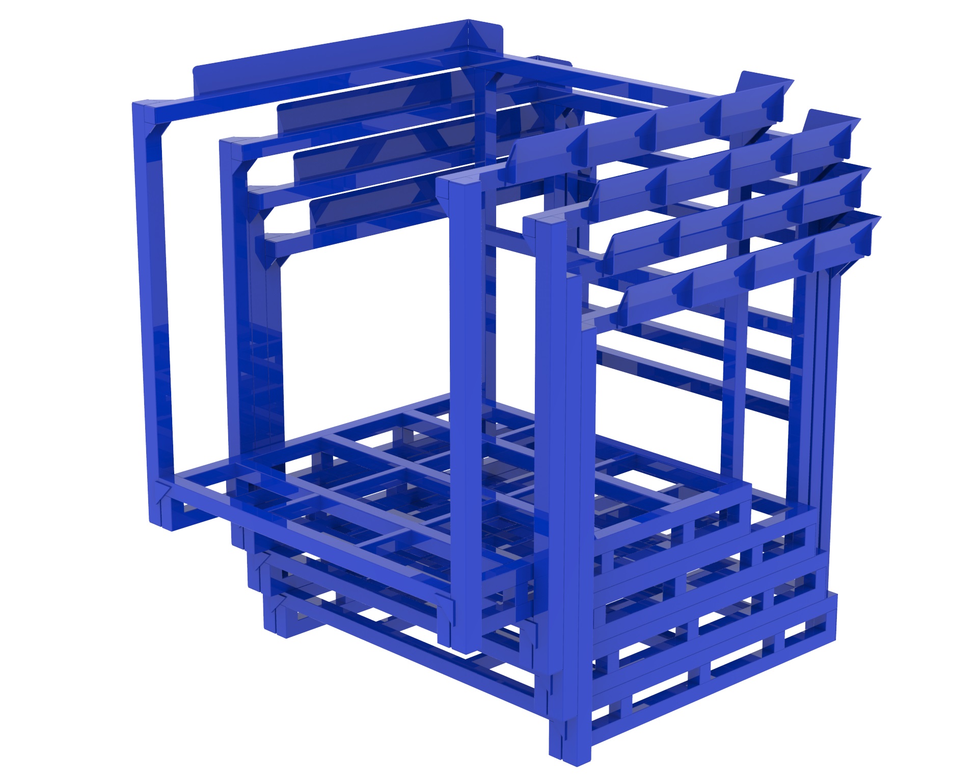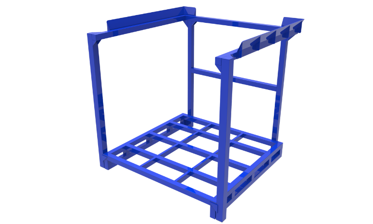 - • Stackable & Nestable: Designed for secure stacking when loaded, with structural supports providing safe load distribution up to multiple levels. When empty, frames nest compactly by sliding into each other, reducing return transport and storage volume by up to 70%.