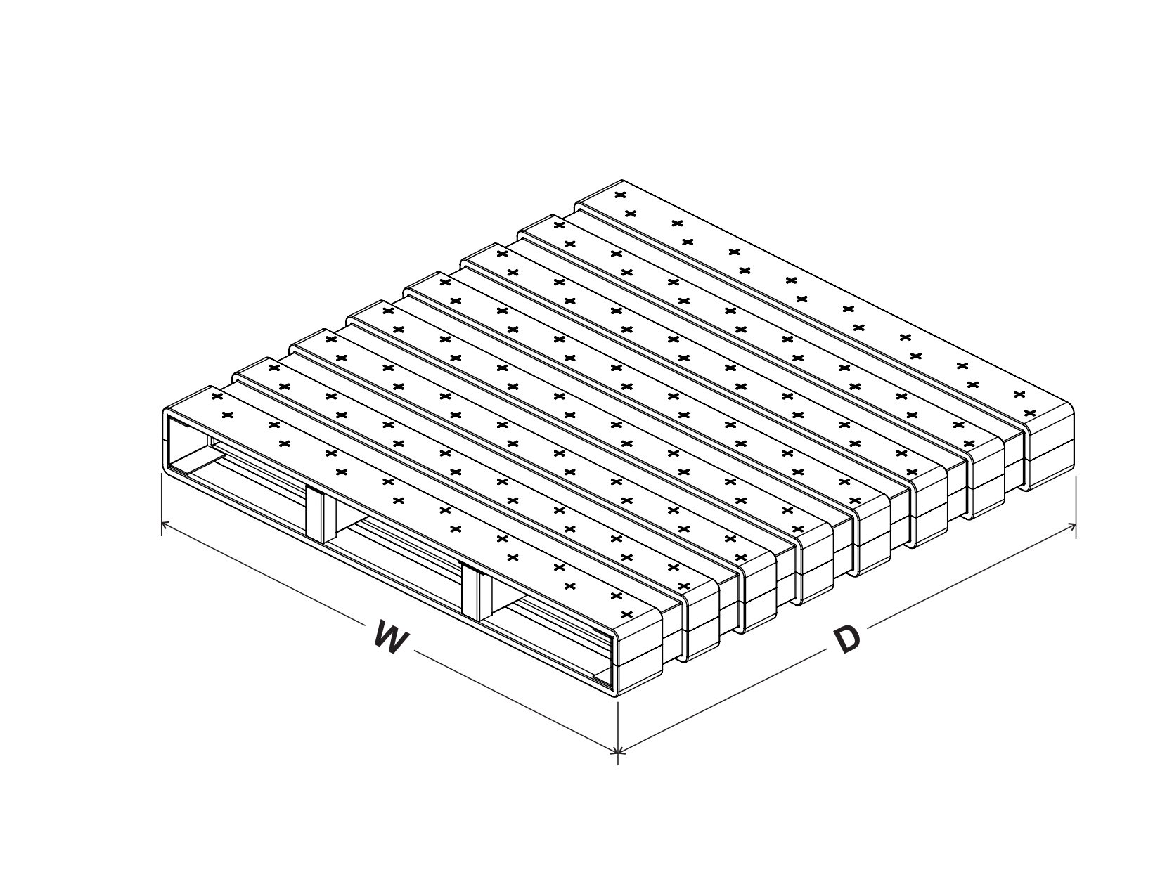- • Stackable Design: Pallets can be stacked up to 3 high when palletized products are strong enough to bear their own weight, optimizing storage space without compromising safety.